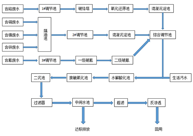 我國電鍍廢水的常規(guī)處理技術(shù)已經(jīng)比較成熟,現(xiàn)代生物法處理電鍍廢水是非常有發(fā)展前途的一項廢水處理技術(shù),且不產(chǎn)生二次污染,關(guān)鍵是要運用新技術(shù)對其進行深度處理,進一步提高出水水質(zhì)。膜處理技術(shù)因其分離效率高,且能回收重金屬,今后必將在電鍍廢水處理中占據(jù)重要的地位。同時通過推廣清潔生產(chǎn)工藝,從電鍍生產(chǎn)的各個環(huán)節(jié)上減少排污量,也是解決電鍍廢水污染的根本方法。