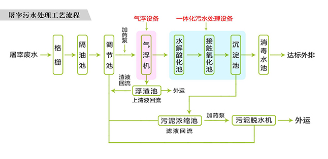 我公司研發(fā)生產(chǎn)的一體化屠宰污水處理設(shè)備,針對屠宰污水的水質(zhì)特點,利用活性污泥法來達到凈化污水的目的。其原理:利用厭氧菌、好氧菌自身的生命活動消耗污水中的有機污染物,同時微生物形成的生物絮凝體使懸浮狀和膠體狀的有機污染物失穩(wěn)絮凝,吸附在活性污泥表面,降解有機物,達到凈化污水的效果。